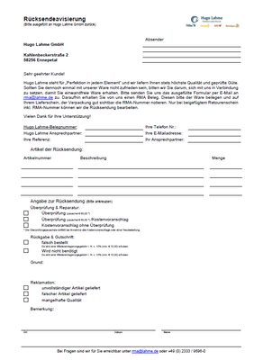 Rücksendungsavisierungsformular (RMA)